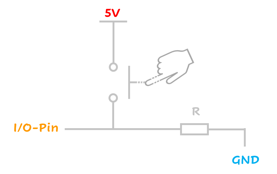 Mysterium Taster: Je nachdem, wie der Taster angeschlossen wird, kannst du die Logik in deinem Programm umdrehen: Dabei dreht sich aus elektrotechnischer Sicht alles um den Vorwiderstand: Pull-DOWN oder Pull-UP?
